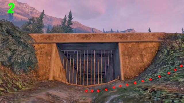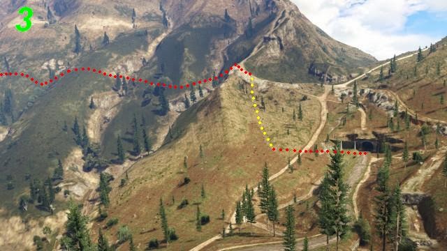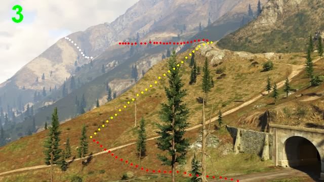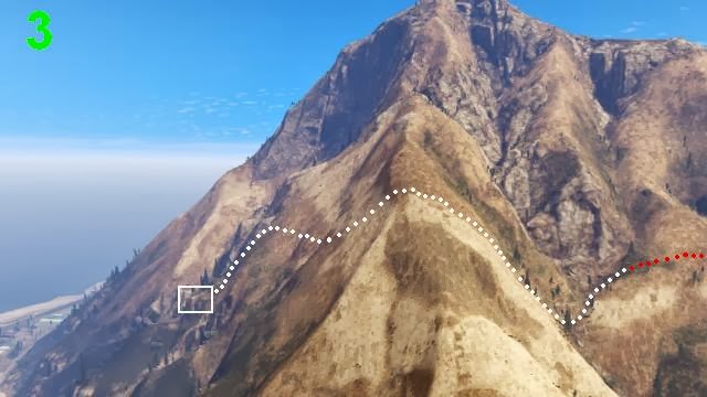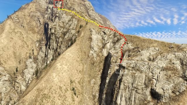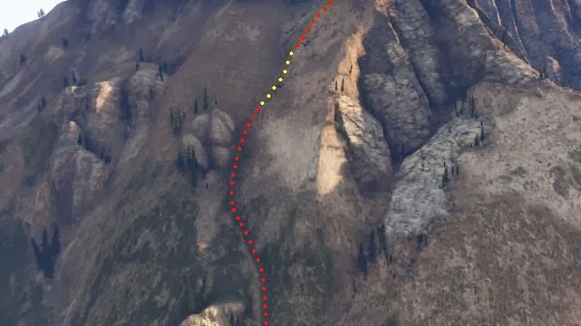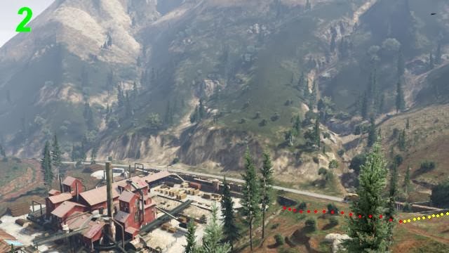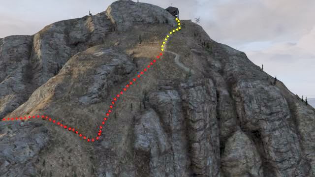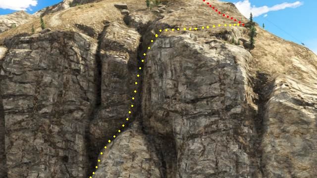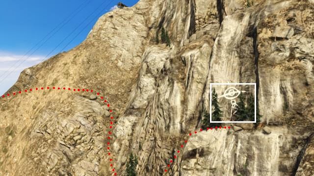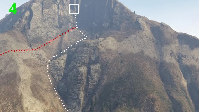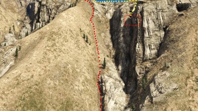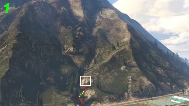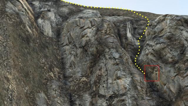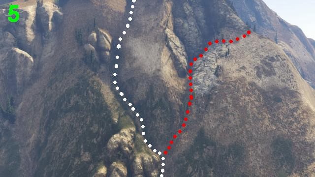 - Head down the mountain from the Chiliad peak, past the old wooden ramp. [Example 9.]