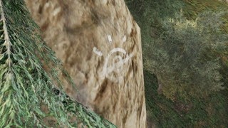 - Ride back along the mountain hiking track heading left until you are just past the rocks on the left side of the hiking track. Then head straight for the Pine trees that you will be able to see on a ledge above. [Example 25.]